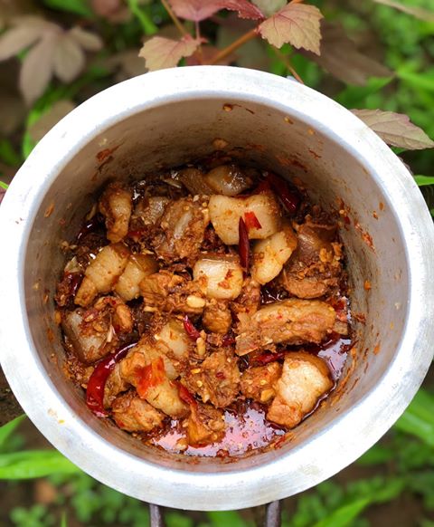 Smoked Pork with Bamboo Shoot – Signature Naga dish, smoky and tangy.